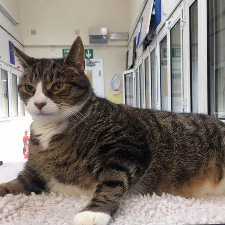 Thanks to his carefully monitored diet his weight has already dropped to 9.5kg. Staff at the centre are hoping to eventually get him down to a much healthier 8kg while he is still in care, while any potential owner will have to commit to sticking with the weight loss diet to reduce it further, ideally down to a more slender 6kg.